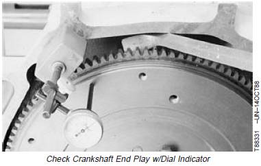 Measure end play prior to removing crankshaft todetermine condition of thrust bearings.