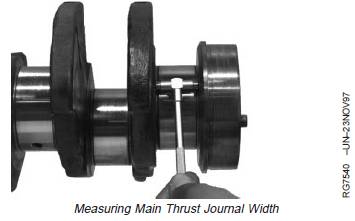 1.    Measure and record crankshaft main thrust journalwidth.If crankshaft thrust journal width is not within specifications, install a new crankshaft.
