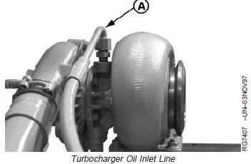 1. Drain oil and disconnect turbocharger oil inlet line (A)