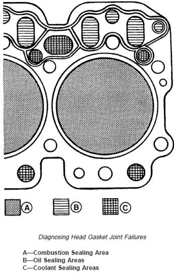 gas, coolant, or oil leakage from head gasket joint, the