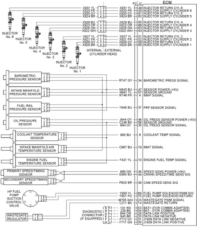 該1204e-e44引擎連接到J2連接器上的ECM示意圖