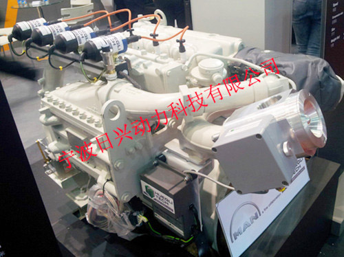 德國(guó)曼MAN工業(yè)重型發(fā)動(dòng)機(jī)、四沖程、直接噴射、水冷、廢氣渦輪增壓及中間冷卻。