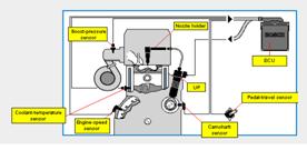 廣泛的跛行回家功能在系統(tǒng)中是一體化的。如果一些次要的傳感器失效,ECU將用其他傳感器的信號(hào)來(lái)替代或用一個(gè)固定的數(shù)值來(lái)控制。
