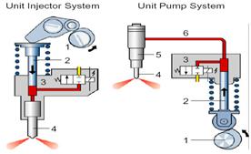 2 、為滿足排放法規(guī)所采用的技術(shù) 歐洲1號(hào)和2號(hào)標(biāo)準(zhǔn):使用機(jī)械控制噴油系統(tǒng)即可達(dá)標(biāo)。歐洲3號(hào)標(biāo)準(zhǔn):必須使用電子控制噴油系統(tǒng)。共軌式系統(tǒng)、電控單體泵,電控泵噴嘴系統(tǒng),蓄壓增壓電噴系統(tǒng)(HEUI)和直列泵分配泵電控系統(tǒng)能夠滿足這個(gè)標(biāo)準(zhǔn)。