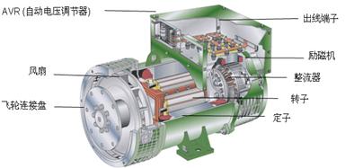 ②發電機:由法國制造,為無刷自勵磁,H級絕緣,中性點直接接地,防護性能符合IP22/23(NEMA1)標準。