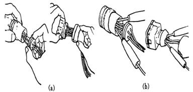 圖:導線連接器的檢查(a)取出防水套 (b)檢查導線連接器
