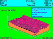 發(fā)動機的ECM內(nèi)有多個三維圖譜. 如圖所示,當(dāng)各個輸入信號的參數(shù)值確定后,在這種工況下的發(fā)動機的正時也就確定了.