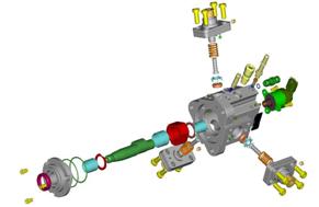 噴油器可以被拆分為一系列功能部件:孔式噴油嘴,液壓伺服系統和電磁閥。